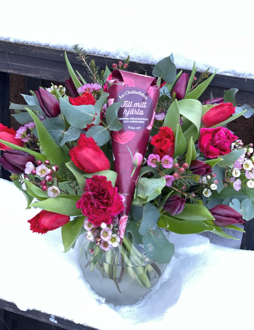 ”TIll Mitt Hjärta” är en handbunden bukett med färska tulpaner kombinerad med lyxig choklad från Åre chokladfabrik. En uppskattad present till födelsedag, kärlek eller som en fin gest i vardagen.